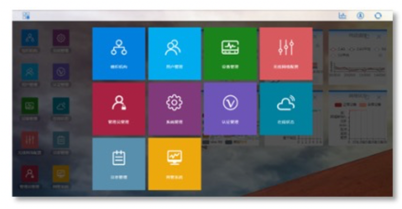对全网的网络设备、无线用户、网络状态集中监控,并统一配置全局无线网络,对全局设备进行统一升级,用户身份统一认证,统一下发认证页面。