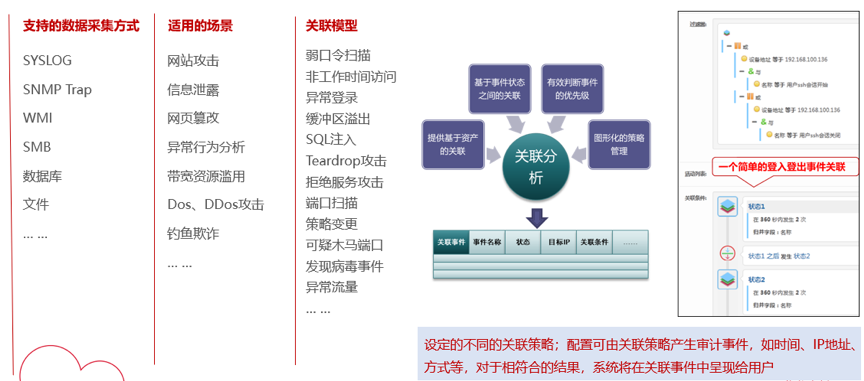 上期我们详细介绍了等保项目必备产品--DCSSA日志审计系统的基础功能和使用场景,本期我们来介绍该产品强大的日志解析及关联分析能力,这两种核心能力能够实时采集汇聚企业不同种类的安全设备、网络设备、主机、操作系统、业务系统的日志,顺利获得解析和关联性分析能发现一些“看不见”的问题。