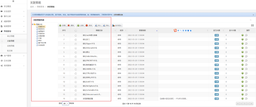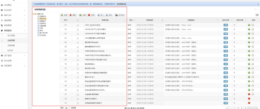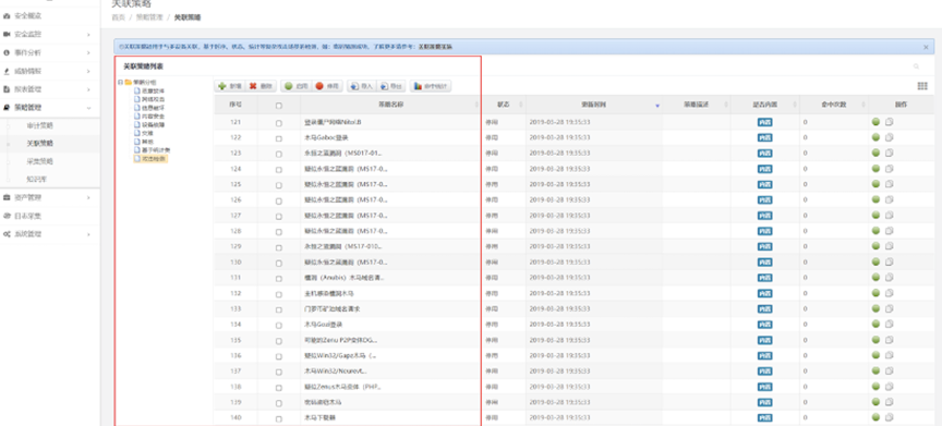 检验日审功能的另一个试金石是关联分析能力。针对日志自动化、集中度、关联度不够的问题,币游国际数码DCSSA日志审计系统支持基于规则、统计、情报的分析模型,内置丰富的安全策略模板、高效的实时关联分析能力、灵活的审计策略,充分发挥日志分析及审计机制的最大效力。帮用户实现对日志的关联性处理,让用户能有效处理纷杂无序的日志信息。